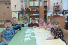 Наступила зима! С ее приходом произошли кругом большие преобразования. Особенно стали неузнаваемые деревья. Летом они шелестели зеленой листвой, осенью сбросили ее и стали голыми. Но деревья зимой могут преобразовываться. Особенно сказочными они выглядят после снегопада, когда снежинки прилипают к веткам и стволам, словно белая пушистая вата. Вот мы сегодня и мастерили с воспитанниками младшей группы «ОГОНЬКИ» коллективную работу под названием « Деревья в снегу» Снежинки у нас необычные - ладошки самих ребят, которые помогли нам сделать наши родители, получив на дом домашние задание, вырезать из белой бумаги по 5 ладошек. Заниматься всем вместе, выполняя коллективные работы, нам очень нравиться. Это не первая наша работа и надеюсь не последняя по использованию вырезанных ладошек. Детки с большим удовольствием примеряли на себя вырезанные ладошки, старались отыскать именно свою, терпеливо ждали каждый своей очереди побыть «снегопадом». На данном занятии мы пополнили свой словарный запас словами: снегопад, вьюга, метель.