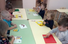 Дети слушали воспитателя, повторяли порядок аппликации, правильно выполнили последовательность работы.