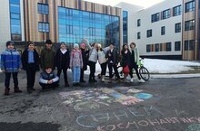 В связи с этим днем, все желающие учащиеся могли сегодня присоединиться к Фестивалю рисунков на асфальте «Волшебный мир космоса». -