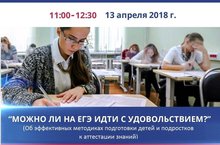 13 апреля 2018 в 11:00 состоится Республиканское Родительское интернет-собрание на тему "Можно ли на ЕГЭ идти с удовольствием?". Онлайн трансляция собрания пройдет на сайте киу.рф, а задать свои вопросы можно по адресу roditelirt@mail.ru