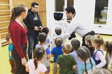 В пятницу нашу Школу посетил интересный персонаж - робот Алантим! Робот показал себя как увлекательного собеседника, танцора и певца! Каждому от наших малышей до 11 класса удалось хоть чуть-чуть поговорить с роботом лично Ну и конечно, на память ребятам остались замечательные фотографии!)
