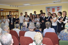 23 ноября силами лицеистов был организован праздничный концерт в Верхнеуслонском Доме-интернате для престарелых и инвалидов. Формат таких встреч для Лицея новый, потому были некоторые опасения… Как оказалось, напрасные! Приехав намного раньше, мы были приятно удивлены, что нас уже ждали с нетерпением! В коридорах то тут, то там слышалось: «Как вам рады!», «Здоровья!». На начало мероприятия в зале сидело большое количество зрителей, а в течение концерта их число только увеличивалось. Открыла концерт Надежда Алексеевна, сказав много добрых и приятных слов в адрес жителей Дома. Лицеисты представили несколько творческих номеров, каждый из которых сопровождался аплодисментами и криками «Молодцы»!