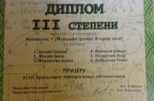 С 25 ноября по 1 декабря 2016 г. в городе Тюмень прошел XLVIII Уральский турнир юных математиков. Турнир является крупнейшим командным математическим соревнованием для школьников 6−8 класса, фактически открытым первенством России. В нем приняли участие более 500 школьников из Москвы, Санкт-Петербурга, Ярославля, Ижевска, Казани, Ульяновска и других городов, и сел. Всего участвовало 88 команд, состязавшихся в трех возрастных категориях. Турнир проходит в виде математических боев. Это очень интересный вид математического соревнования, когда представители команд по очереди докладывают и оппонируют у доски решения задач. Каждый математический бой требует от участников предельной концентрации, слаженности командной работы, психологической и интеллектуальной самоотдачи. Ведь любая неточность или недоработка может вести к проигрышу. Задачи сложные и интересные, требующие хорошей математической подготовки. По итогам математических боев наша команда в составе: Хайруллин Ренат, Жукова Анна, Майоров Даниил, Дюдин Герман, Печерский Илья и Журавлева Дарья- стала обладательницей диплома 3 степени!