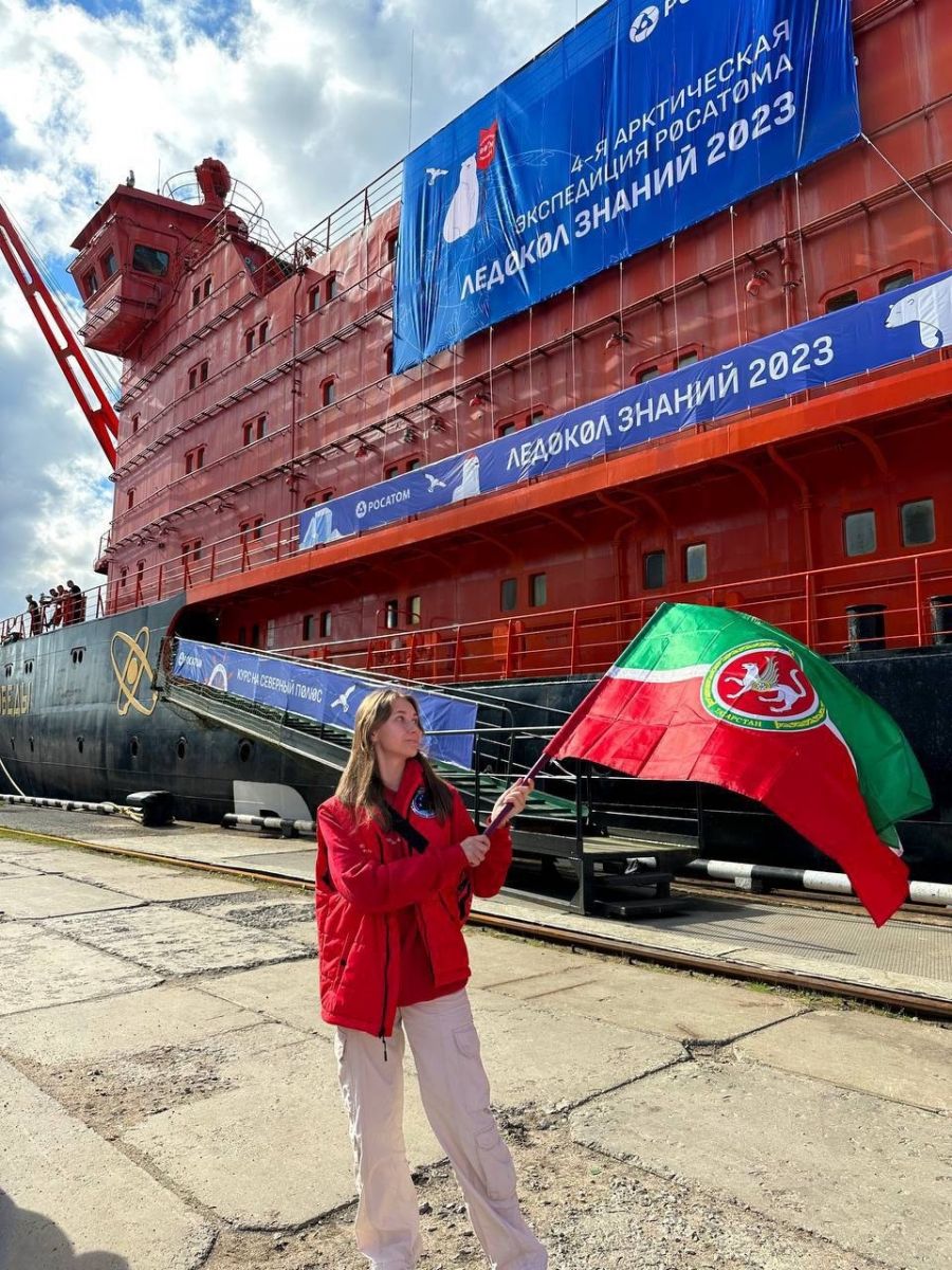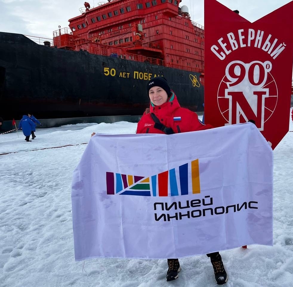 В этом учебном году наша лицеистка Мальцева Светлана стала победителем всероссийского конкурса «Ледокол Знаний». Наградой для Светланы стала экспедиция на Северный полюс с 15 по 25 августа. Желающих оказаться на вершине Земли было около 10000, но победителями стали 68 ребят. На борту судна талантливые подростки из 41 региона России – от Дальнего Востока до Северного Кавказа – отобранных по итогам интеллектуальных конкурсов, в сопровождении экспертов, ученых, наставников и популяризаторов науки прошли по маршруту Мурманск – Северный полюс – Земля Франца-Иосифа – Мурманск, своими глазами увидели русскую Арктику и получили новые знания. В ходе экспедиции на одном из самых больших атомных ледоколов в мире «50 лет Победы» Светлана Мальцева вместе с ребятами изучала современные технологии атомной отрасли, аддитивные и лазерные технологии, роль Северного морского пути и атомных ледоколов.