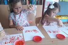 Обыкновенный полиэтиленовый пакет немного надуваем и завязываем на узелок или затягиваем резинкой, главное, чтобы он не пропускал воздух. Для рисования нам понадобится один из уголков пакета.