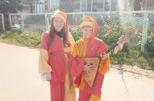 На каждом праздничный наряд.
