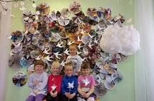 В нашем детском саду появилась фотозона. Этим модным словом принято называть красивый тематический уголок, предназначенный для создания ярких праздничных снимков. Наши сотрудники умело превратили небольшое пространство в уютное, красивое местечко. Для создания праздничного настроения нам понадобились лишь ненужные газеты и журналы.