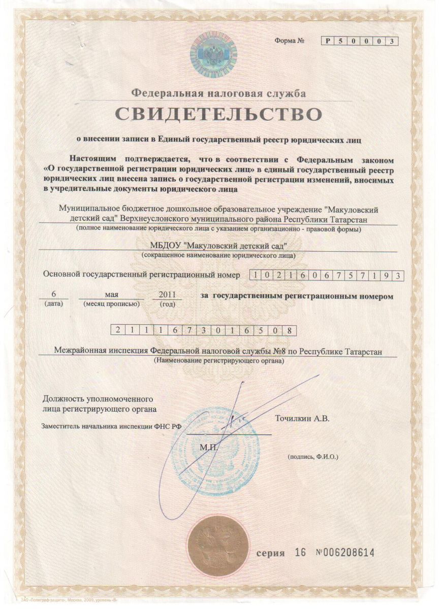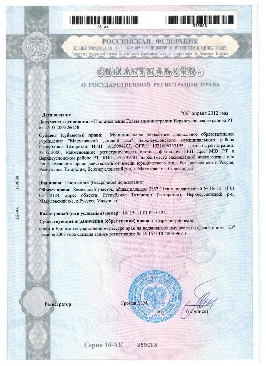 | Адрес: | 422582, Республика Татарстан, Верхнеуслонский район, с. Русское Макулово, ул. Садовая, д. 5 |