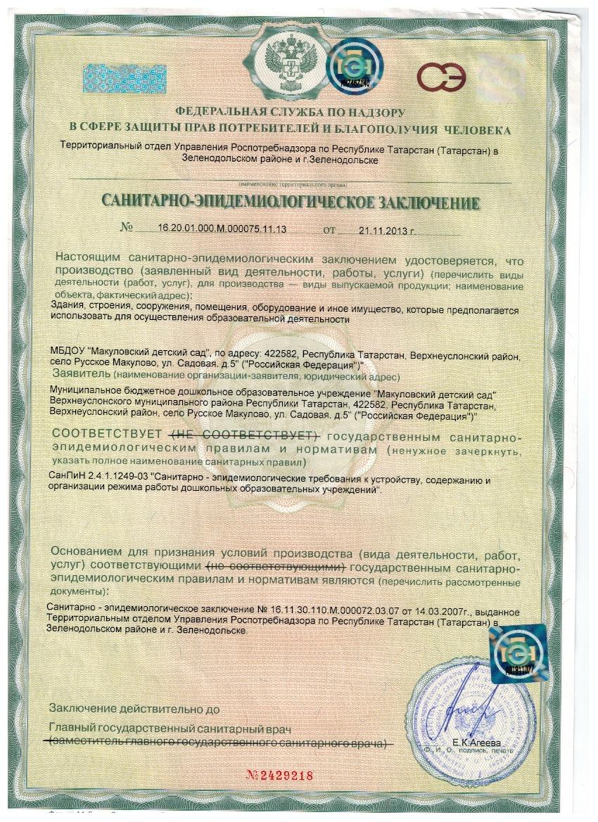 Санитарно-эпидемиологическое заключение