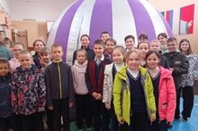 мобиль планетарий килде.Мәктәпнең спорт залында йолдызлы күк