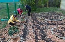Ә бүген тәрбияче җитәкчелегендә, балалар чәчәк түтәлләрен иске чәчәкләрдән чистартып, язга әзерләделәр.