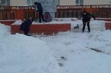 В рамках проведения мероприятия «Миллион добрых дел», посвящённого 75- летию Победы в Великой Отечественной войне 1941 – 1945 гг., силами юнармейцев проводилась очистка памятника и прилегающей территории от снега и льда.