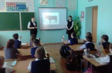 В первый день недели естественных наук обучающиеся 7, 8 классов провели в начальных классах беседы по темам: "Памятники природы", "Интересные вулканы", "Вымершие животные"