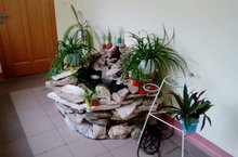 Безнең мәктәптә оештырылган ял почмагы менә шушы инде! Ай буе укучылар укытучылары белән берлектә бу уйны чынга ашырды. Шәп барып чыкты. Хәзер ял почмагында балалар рәхәтләнеп ял итә: су тавышын тыңлый, су да йөзгән лилияләрне күзәтә алалар.