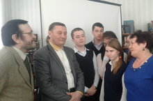 Сегодня 4 апреля ученики Верхнеуслонской школы вместе с учителем Фарукшиной Г.А. приняли участие в организованной встрече с писателями в районной библиотеке. Перед учащимися выступили писатель русской поэзии Ольга Журавлёва, чувашский писатель Евгений Турхан и татарский драматург Юныс Сафиуллин. Учащиеся с большим удовольствием слушали их выступления. Далее в рамках проведения акции "Я говорю по татарски" ученики задавали им вопросы на татарском языке. Так между ними была дружеская беседа.