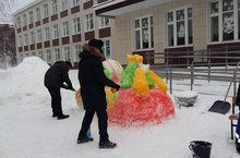 Педагоги МБОУ «Верхнеуслонской СОШ» активно взялись за изготовление снежных фигур. В этом году нас будут радовать , как обычно, Дед Мороз со Снегурочкой и символ наступающего года – огненный петух.