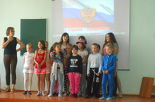 Сегодня в пришкольном лагере "Солнышко" день был очень насыщенным. В предверии праздника Дня России, ребята просмотрели фильм о России, читали стихи о Родине. Между отрядами лагеря был проведен конкурс, на лучшее исполнение песен о России.