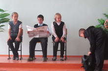 В День учителя - 5 октября! День начался с линейки, организованной "новой" администрацией, на которой были представлены все "учителя" по предметам. Со звонком на урок все разошлись по кабинетам.