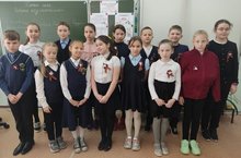 4 б сыйныфы 9 Май бәйрәменә актив әзерләнә. Сыйныф җитәкчесе А.В. Кореницына балалар өчен технология дәресендә брошка ясау буенча мастер-класс үткәрде. Балалар Георгий тасмасы белән брошь ясадылар.