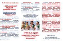 Татарстан Республикасы буенча Роспотребнадзор идарәсе (алга таба - идарә) хәбәр итә: Бөтендөнья сәламәтлек саклау оешмасы инициативасы буенча Европада, шул исәптән Россия Федерациясендә һәм Татарстан Республикасында 2021 елның 26 апреленнән 2 маена кадәр Европа иммунизация атнасы үткәрелә.ЕИ-2021нең төп максаты-вакцинацияләүнең әһәмияте турында халыкның белем дәрәҗәсен күтәрү. Кызганычка каршы, ата-аналар һәм өлкәннәр профилактик прививкаларның ролен бәяләп бетермиләр, шуның белән үзләрен һәм балаларын йогышлы авырулар белән авырырга куркыныч астына куялар.