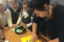 Все дети знают, что в доме культуры проходят концерты. Но никто не знает, а что же там ещё есть. А там очень много познавательного. В этом убедились ученики 1-х классов МБОУ «Верхнеуслонская СОШ». Ребят в фойе первого этажа приветливо встретили работники ДК. Они повели знакомить их со всем интересным, что есть в этом большом и красивом здании. Побывали ребята и в кабинете директора, и в мастерской, где увидели, как оформляются различные стенды. Рассмотрели выставки наград и грамот, поделки. Побывали в танцевальном зале, на репетиции. В костюмерной ребята даже примерили костюмы. Впереди была кульминация знакомства с Домом Культуры – операторская. Зачарованно следили ребятишки за тем, как Тимур включал музыку, менял в зале освещение, запуская разноцветные танцующие огни. Дети были в восторге от всего увиденного.