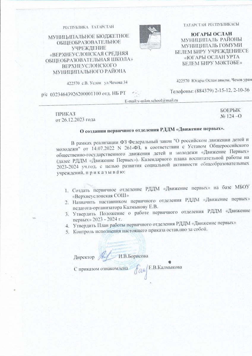 Приказ о создании первичного отделения РДДМ "Движение первых"