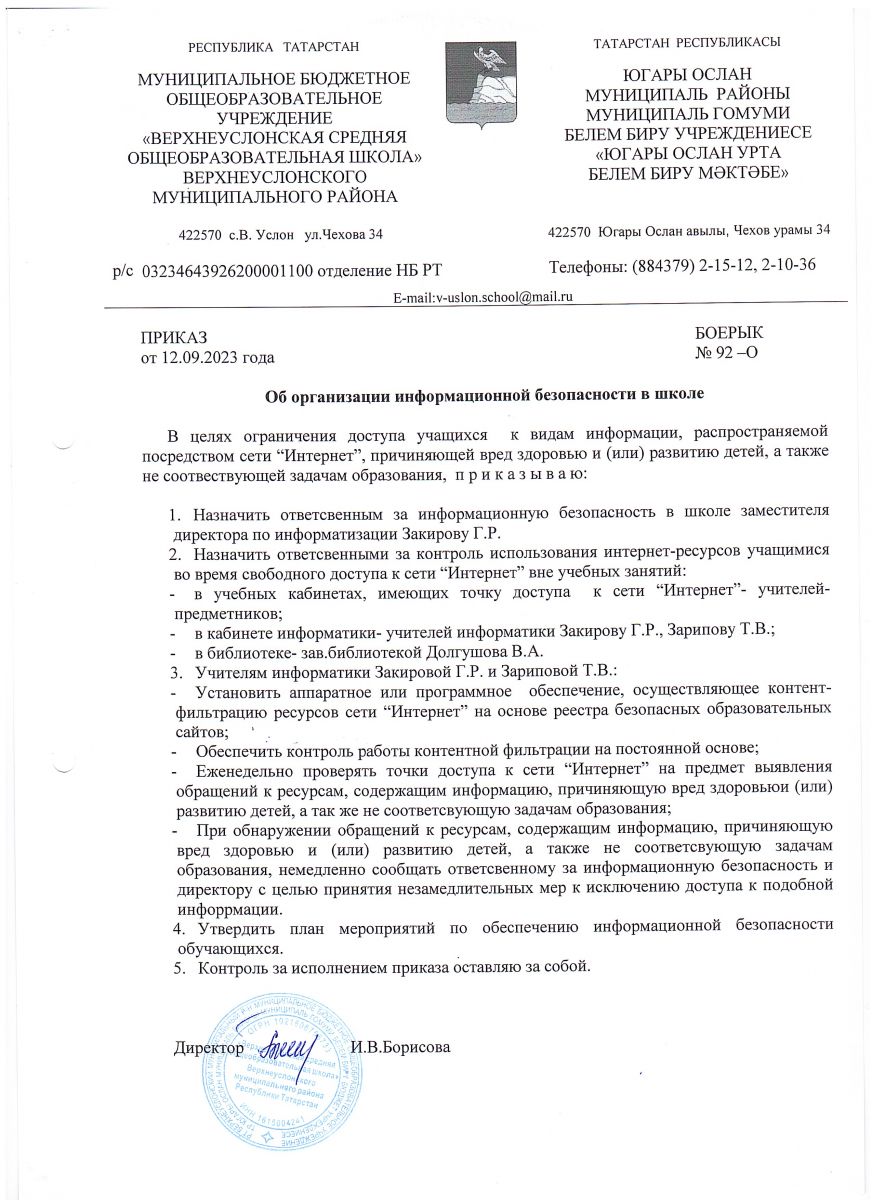 Приказ об организации информационной безопасности в школе
