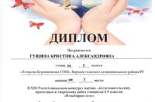"Мин авылны сайлыйм" фәнни-тикшеренү, проект һәм иҗат эшләренең 13 нче республика конкурсында катнашучы 1 нче сыйныф укучысы Гущина Кристина Александровнаны котлыйбыз.