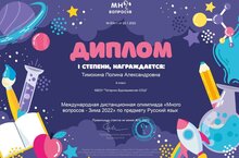 Подведены итоги дистанционной олимпиады «Много вопросов – Зима 2022» по предмету Русский язык.