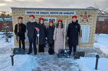 23 ноябрь көнне «Дельта» мәктәп отрядының яшьармиячеләре Бөек Ватан сугышы вакытында һәлак булганнар истәлегенә куелган һәйкәл территориясен чистарттылар.