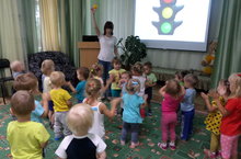 Пристегнув ремни безопасности, воспитанники сели в воображаемый автобус и поехали.