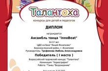 Өстәмә белем бирү үзәге педагогы Любовь Трофимова бу җиңел булмаган чорда нәкъ менә шундый девизга ия булды. Ул «InnoBeat» бию ансамбленең иҗат номерынын видеоязмасын җибәргән һәм балалар һәм педагоглар конкурсында үзенең мактаулы беренче урынын яулаган. Бию коллективын җиңүләре белән котлыйбыз! Барыгызга да фантазия күрсәтеп, Любовь Трофимова үрнәгенә ияреп, иҗади потенциалны тормышка ашырып, ерак конкурсларда катнашуыгызны телибез. Барыгызга да иҗади уңышлар һәм яңа җиңүләр! -