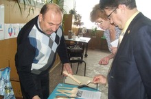 В упорную борьбу за лидерство вступают Вахитовское и Октябрьское сельские поселения. Вахитовцы уже с порога встречают гостей горячим чаем. В сельском Доме культуры оформлена богатейшая выставка изделий, изготовленных школьниками и жителями сел Бахча-Сарай, Матюшино и Вахитово. Удивительные изделия из бисера сплели воспитанники объединения «Хозяйка усадьбы» под руководством талантливого педагога Садеевой Лилии Амировны. Изумительные березки в разное время года, букеты цветов, цветущие кактусы можно было увидеть на выставке. Далее внимание гостей привлек пулемет «Максим», сделанный педагогом дополнительного образования МБОУДОД «Дом школьников» Токаревым Андреем Викторовичем. Андрей Викторович сам на все руки мастер и детей обучает всем видам мастерства. Все деревянные изделия, представленные на выставке, изготовлены на занятиях кружка «Столярное дело». Воспитанники кружков «Хозяйка усадьбы» и «Столярное дело» - постоянные призеры и победители районных и республиканских конкурсов.
