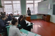 На уроке русского языка в 9 классе учитель Слушкина Е.В. познакомила участников семинара с формами и методами работы с текстом , развития читательской грамотности при подготовке к ОГЭ.