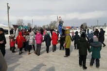 В масленичном представлении приняли участие и обучающимся нашей школы: Гайнутдинова Диляра в роли Масленицы, Молостова Ксения - Весна, Слесарева Юлия – Зима, а Баранова Люба и Сергейчева Милана исполнили песню «Посею лебеду на берегу»