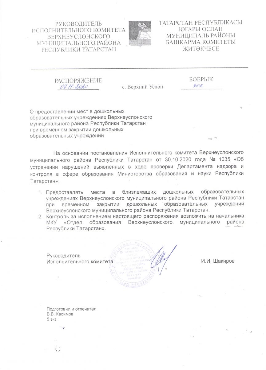 Постановления исполнительного комитета Верхнеуслонского муниципального района на 2020-2021 учебный год