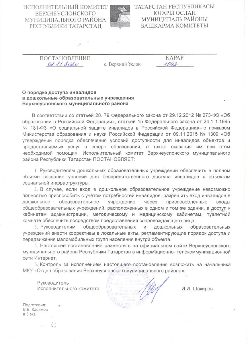 Постановление о порядке доступа инвалидов в дошкольные образовательные учреждения