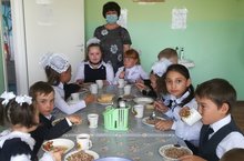 Начальные классы МБОУ "Введенско-Слободская ООШ" после торжественной линейки и классных часов пришли на обед. В этом учебном годы учащиеся 1-4 классов будут питаться бесплатно. В чистой уютной столовой ребят ждал вкусный обед. Повар Юлдуз Саидова приготовила суп, кашу, компот. Все ели с удовольствием! Чувствовалось, что все соскучились по школе и по своим друзьям. А первоклассники справились с волнением и работали ложками!