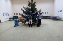 19 декабря для школьной ёлки была завезена и установлена живая ёлка. Её привезли для проведения самого долгожданного праздника. Вечером мальчики и девочки пришли, чтобы украсить лесную красавицу. На ветках оказались шары, бантики, самодельные игрушки. Вот так ёлочка стала новогодним украшением зала.