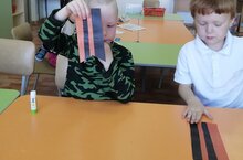 В ходе подготовки к акции дети познакомились с историей Георгиевской ленточки, узнали о значении цветов: чёрный — дым, оранжевый — пламя. Воспитатель рассказала ребетам о том, как правильно носить Георгиевскую ленточку - почетно на груди. -