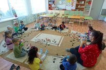 Свои ручки развиваем!Массажный мяч для детей является очень интересной игрушкой, предназначенной для микромассажа. Шипы на его поверхности при перекатывании воздействуют на на нервные окончания, улучшают кровообращение. В Введенско-Слободском детском саду воспитателем проводятся игры с детьми с использованием массажного мяча. Дети проговаривают специальные стихи и выполняют упражнения, что позволяет им также развивать речь и внимание.
