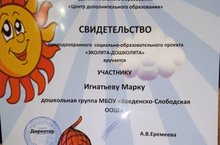 Выпускники Введенско-Слободского детского сада Игнатьев Марк и Денисова Юлия получили свидетельства об участии в природоохранном социально-образовательном проекте "Эколята - дошколята"