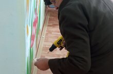 Сотрудники школы в выходные произвели замену плинтусов в детском саду,