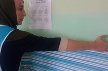 Сотрудники школы обклеили наиболее уязвимые водой места в школьной столвоой, для сохранения покрашенных за лето стен