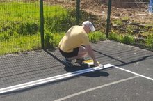 01 июня учитель физической культура - Арслан Хайрутдинов начал работы по обновлению разметки на спортивной площадке