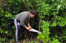 На пришкольном участке Марат Нуруллин произвел спил сорных кустов