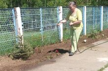 Жара в самом разгаре. Технический персонал школы проводит полевные работы на пришкольной клумбе