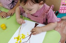 В Введенско-Слободском детском саду первым в этом учебном году занятием с детьми до трех лет было рисование. Малыши учились правильно держать кисть, набирать на нее краску. В итоге получились прекрасные картины осени, украсившие фойе детского сада.
