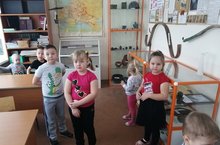 Как вызвать в душе ребенка чувство гордости, сострадания, уважения к истории родного края? Чтобы найти ответы на эти вопросы воспитанники детского сада в рамках подготовки к празднованию 90-летия района и 76-летия Победы в ВОВ посетили музей Введенско-Слободской общеобразовательной школы. Экскурсию для ребят провела воспитатель Альбина Игнатьева. В доступной для дошколят форме воспитатель познакомила детей с историей родного села и района. Ребята и интересом осматривали старинные предметы быта и фотографии. Особое внимание привлек стенд с экспонатами времен Великой Отечественной войны: гильзами от патронов, гранами, настоящей солдатской каской, найденными на раскопках в местах боев.
