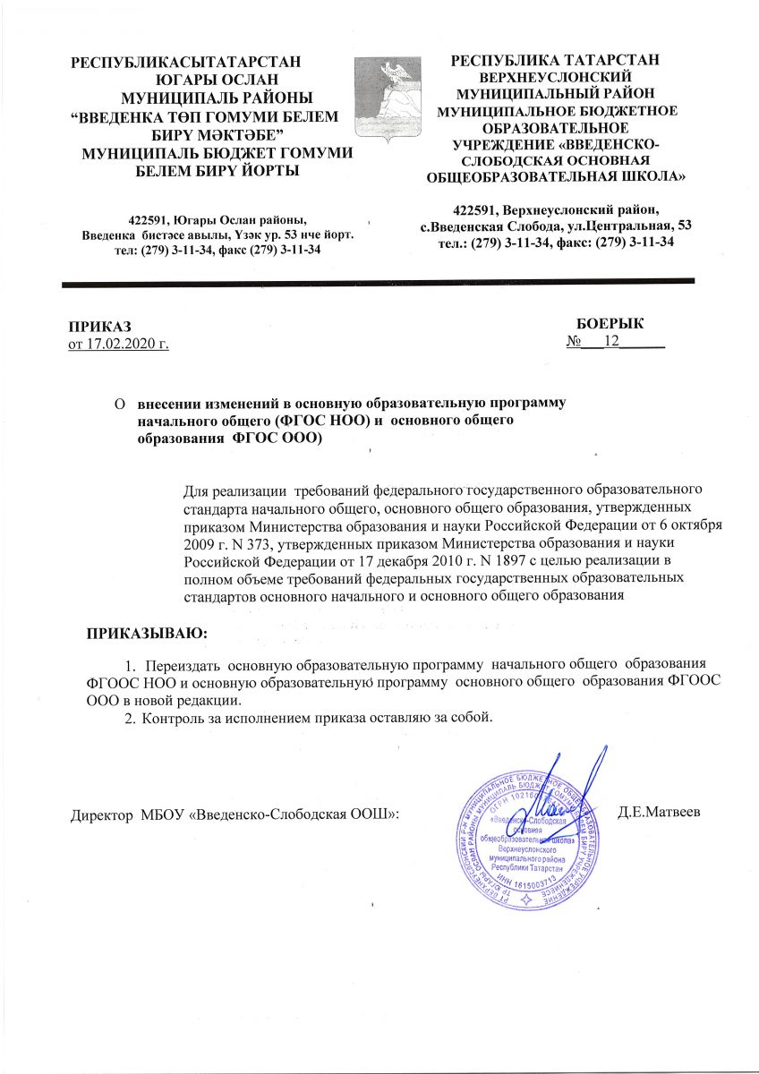 Приказ о внесении изменений в основную образовательную программу